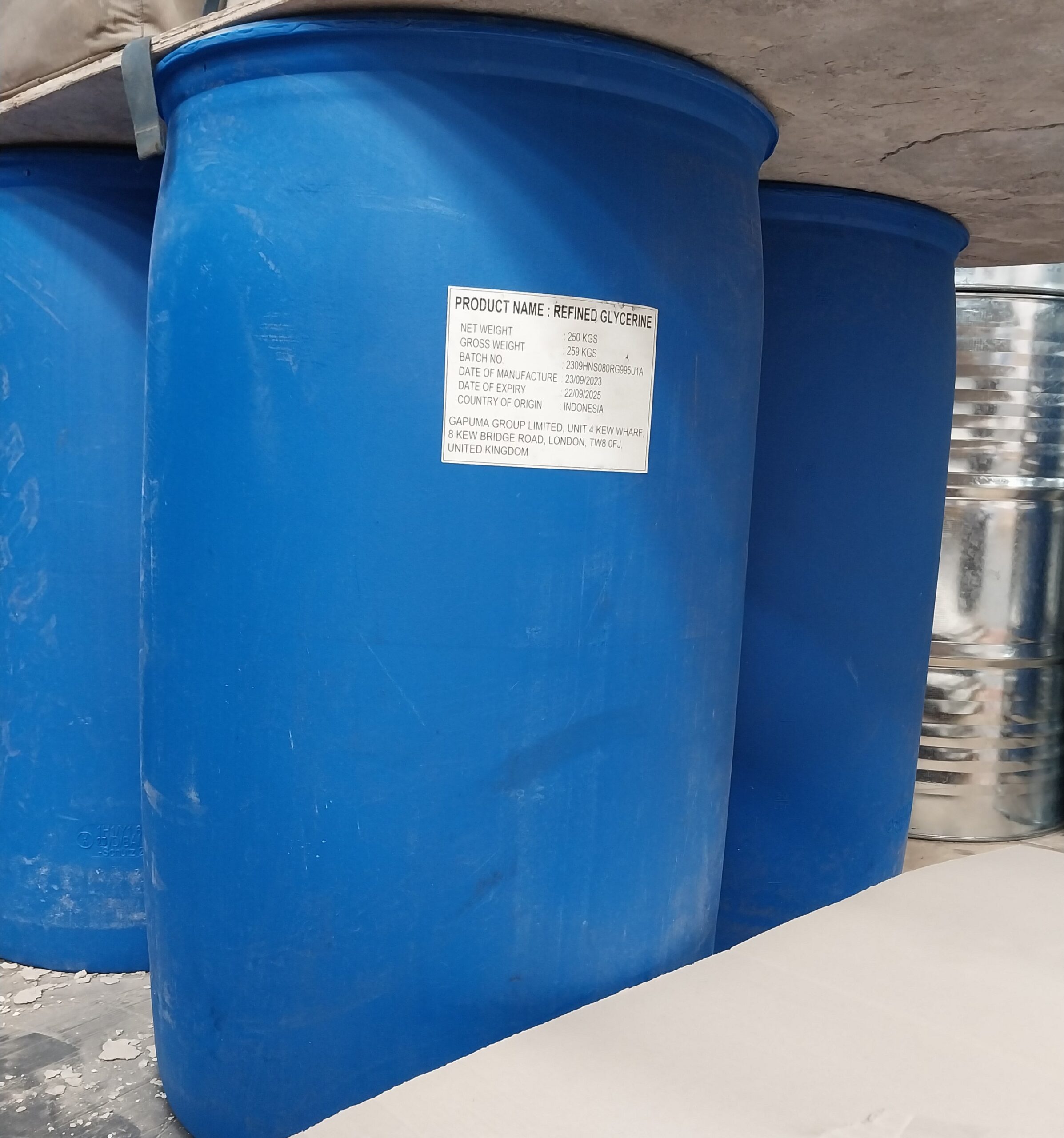 250kg refined glycerin in stock. Available for immediate pick-up or delivery.